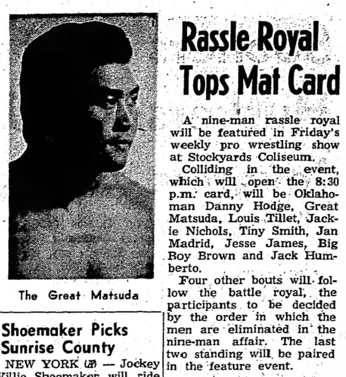 Big Boy Brown vs. Frankie Cain vs. Great Matsuda vs. Jackie Nichols vs. Jan Madrid vs. Louie Tillet vs. Tiny Smith [7 Man Battle Royal]