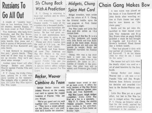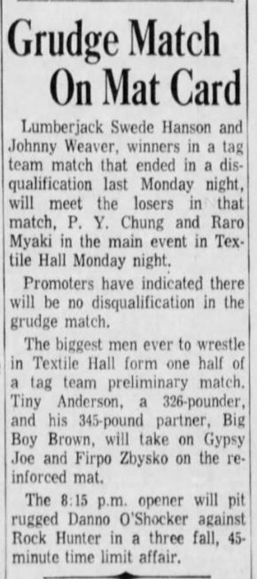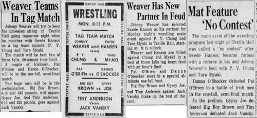 Johnny Weaver – Swede Hanson vs P.Y. Chung – Taro Myaki