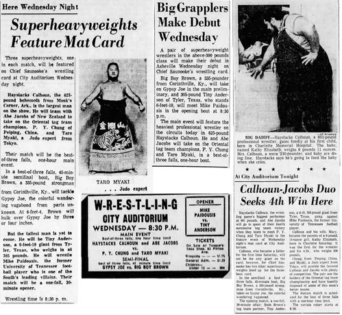 P.Y. Chung – Taro Myaki vs Haystacks Calhoun – Abe Jacobs