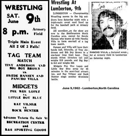 Big Boy Brown – Tiny Anderson vs. Swede Hanson – Pancho Villa
