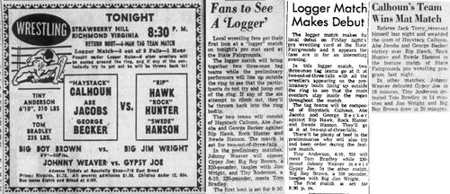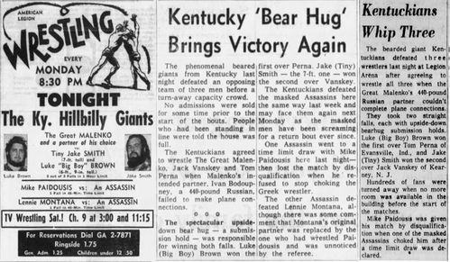 “For Hanson and Paidousis, who have faced the best, Wednesday night serves as a chance for redemption. Their last two appearances against Big Boy Brown and Tiny Anderson resulted in a draw (when both gladiators in the ring were unconscious) and in a disputed defeat.”