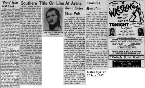 January 20, 1962 – Bridgeport, CT (Advertisement January 27 matches)