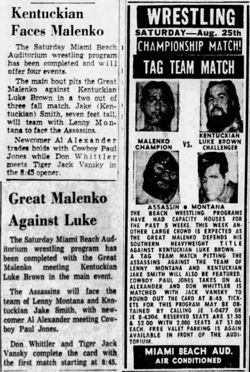 Big Boy Brown – Tiny Anderson def Ivan Kameroff – John Smith DQ
