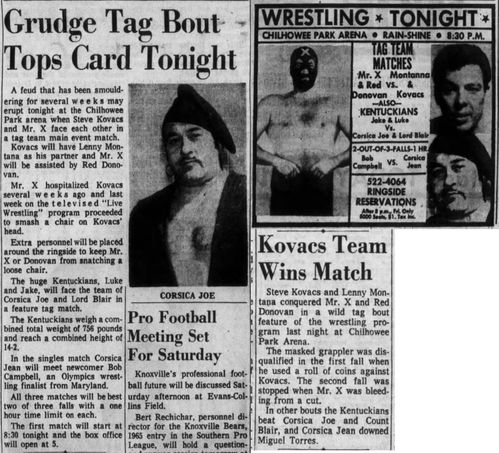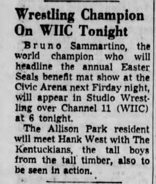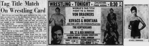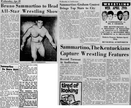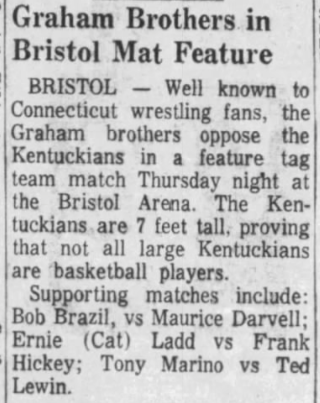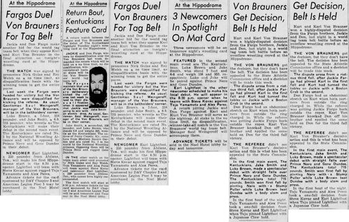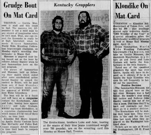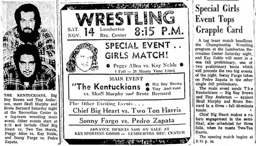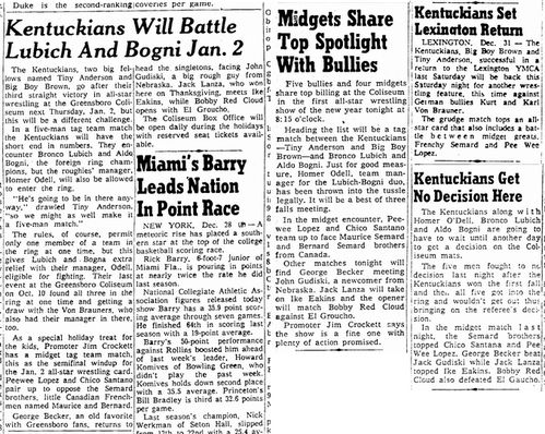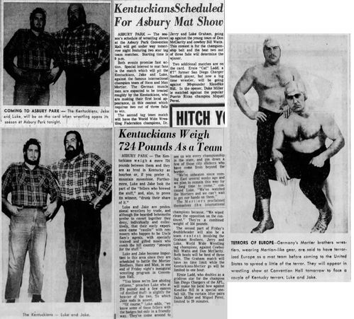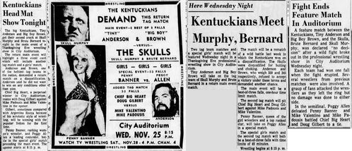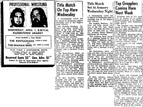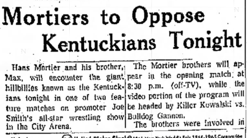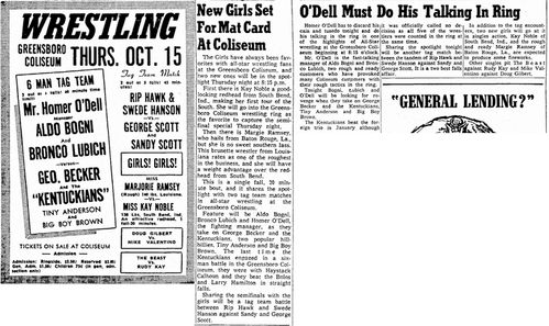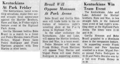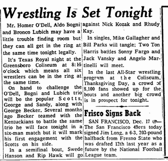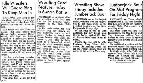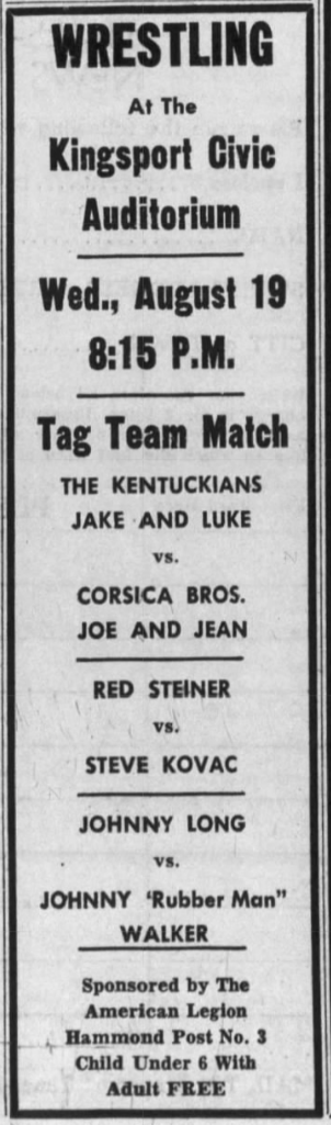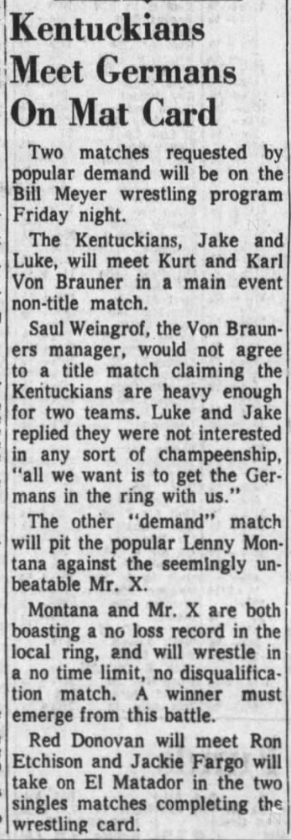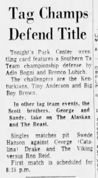 The Kentuckians: Tiny Anderson – Luke “Big Boy” Brown NC Bronco Lubich – Aldo Bogni – Homer O’Dell – Handicap Match