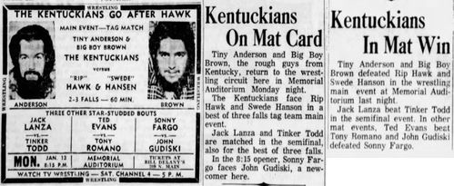 The Kentuckians: Tiny Anderson – Luke “Big Boy” Brown def Rip Hawk – Swede Hanson