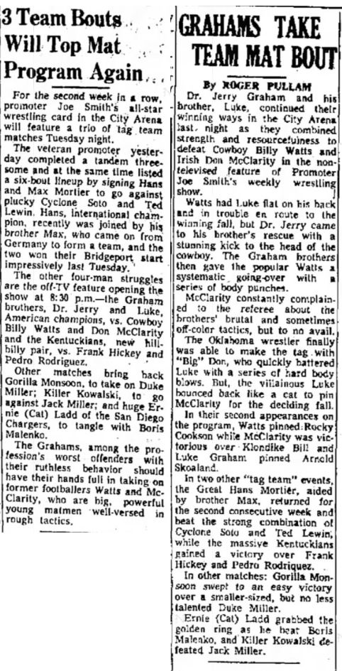 Aldo Bogni – Bronco Lubich def Emile Dupree – Johnny Weaver