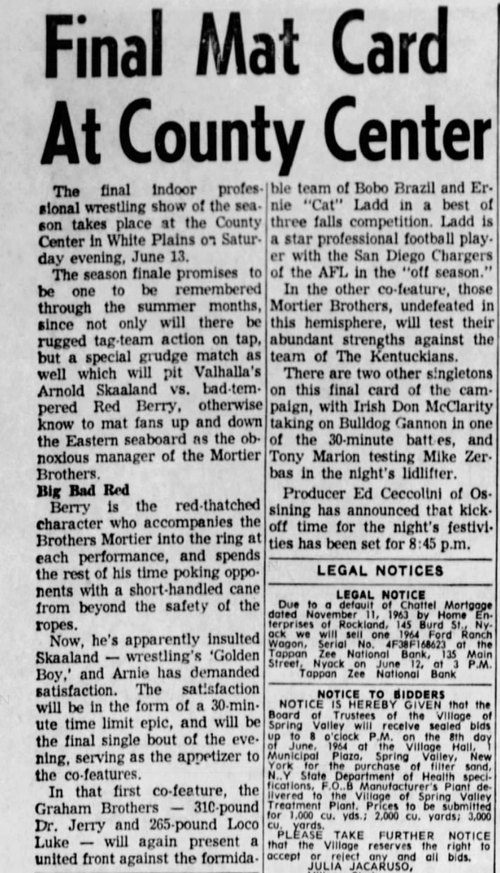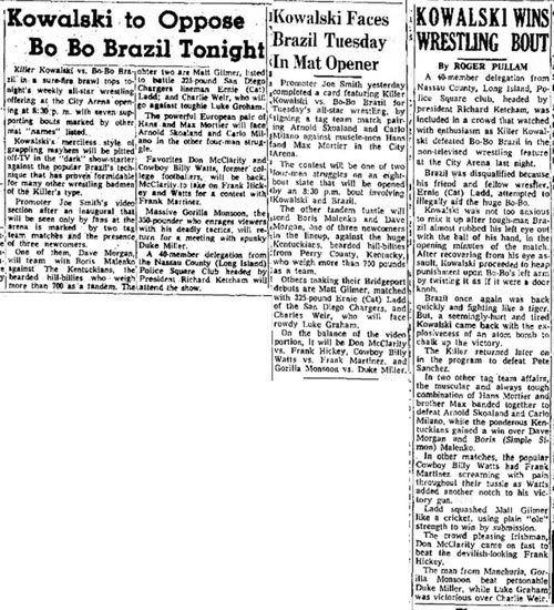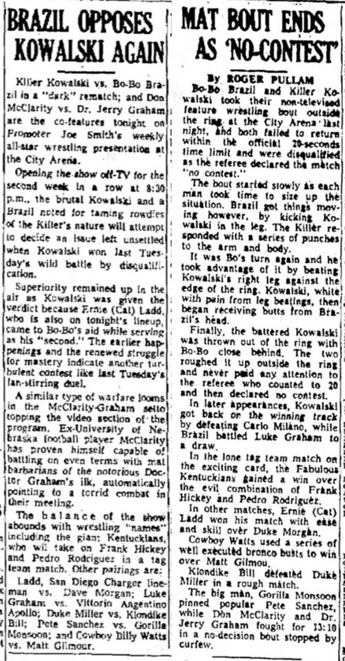 Bobo Brazil – Ernie Ladd def. Jerry – Luke Graham