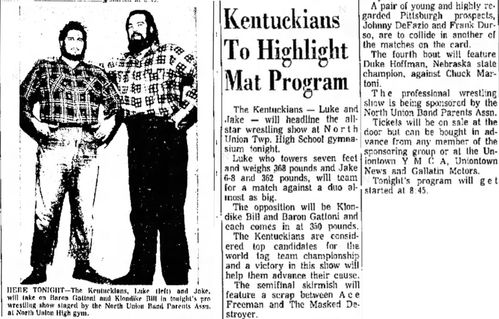 The Kentuckians: Tiny Anderson – Luke “Big Boy” Brown vs. Klondike Bill – Baron Gattoni