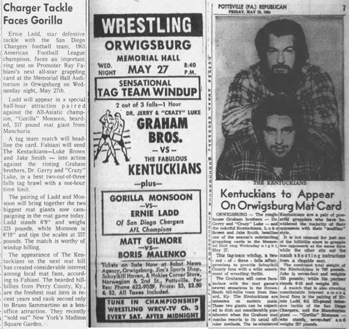 The Kentuckians: Tiny Anderson – Luke “Big Boy” Brown def. Gorilla Monsoon – Boris Malenko
