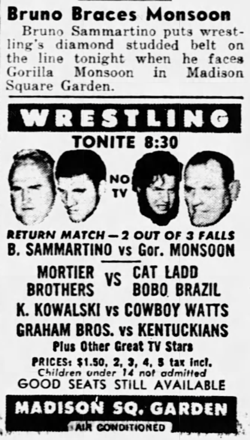 Gorilla Monsoon def. Bruno Sammartino DQ