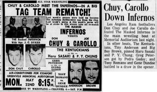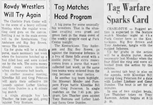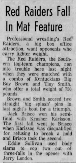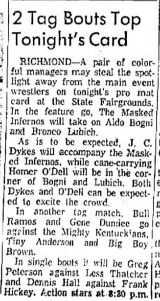 The Kentuckians: Tiny Anderson – Luke “Big Boy” Brown def The Infernos (DQ)