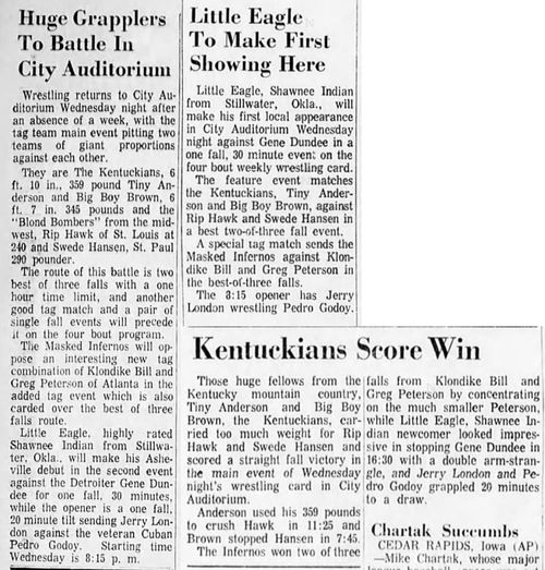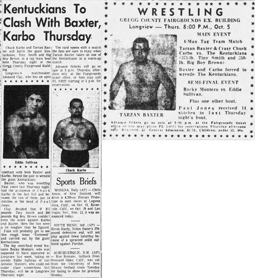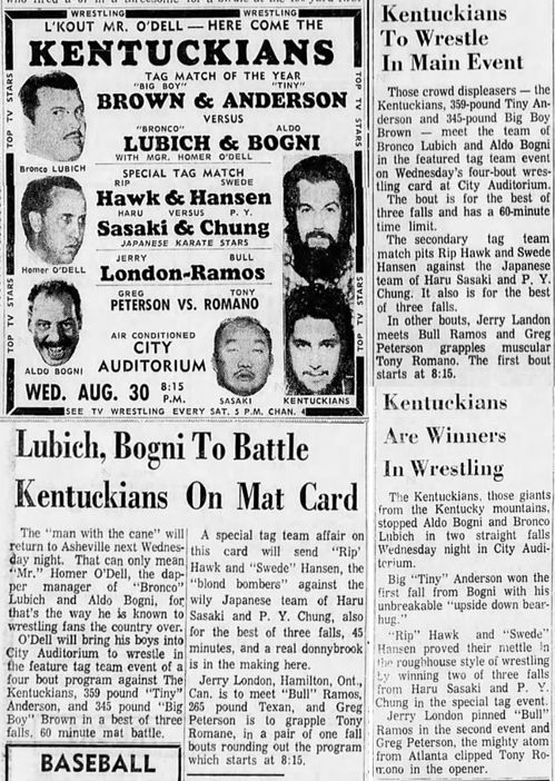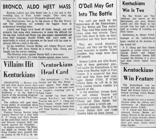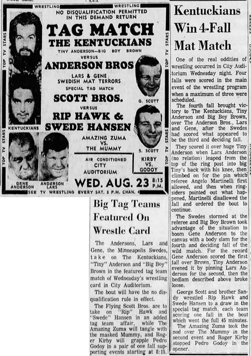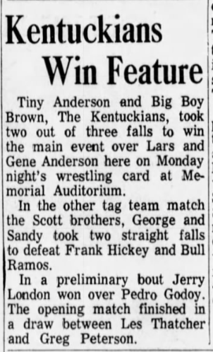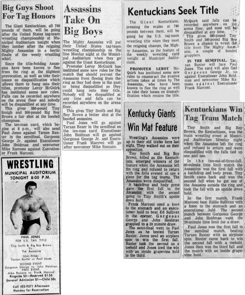 The Kentuckians: Tiny Anderson – Luke “Big Boy” Brown vs. Chuck Karbo – Tarzan Baxter