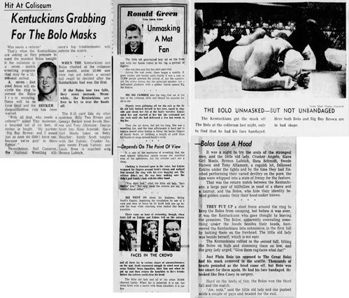 Bolo – Great Bolo def. The Kentuckians: Tiny Anderson – Luke “Big Boy” Brown