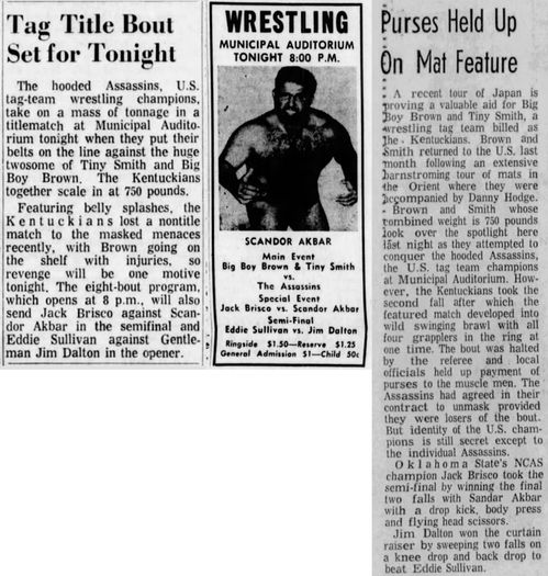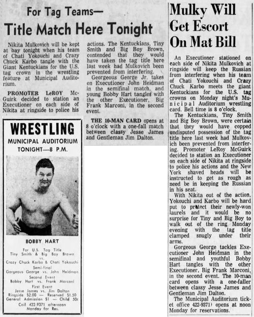 March 29 1967 Springfield, MO – Shrine Mosque – US Tag Team Title Match