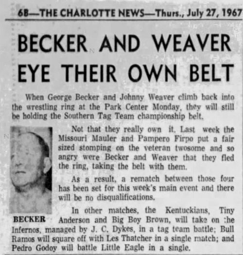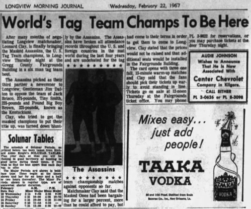 February 13, 1967 – Shreveport, LA – Municipal Auditorium – Southern Tag Team Title Match