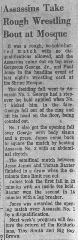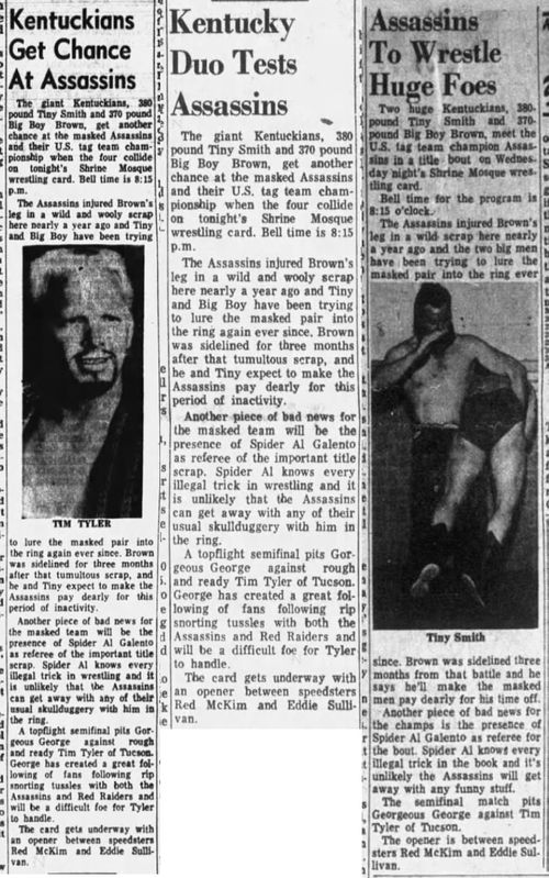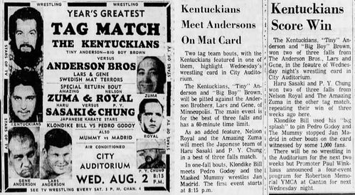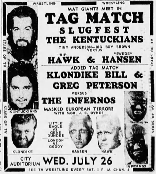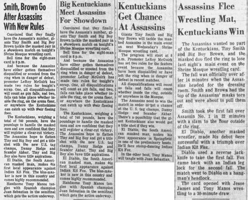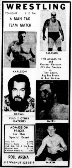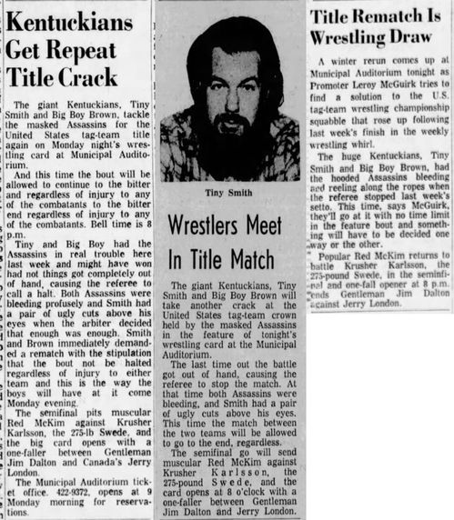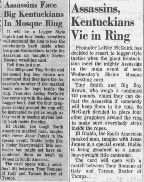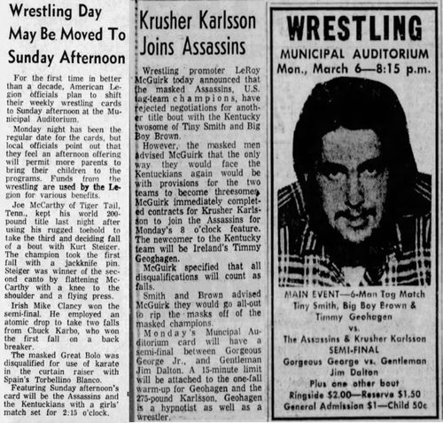 The Kentuckians: Tiny Anderson – Luke “Big Boy” Brown – Red McKim vs. The Assassins – Krusher Karlsson