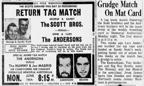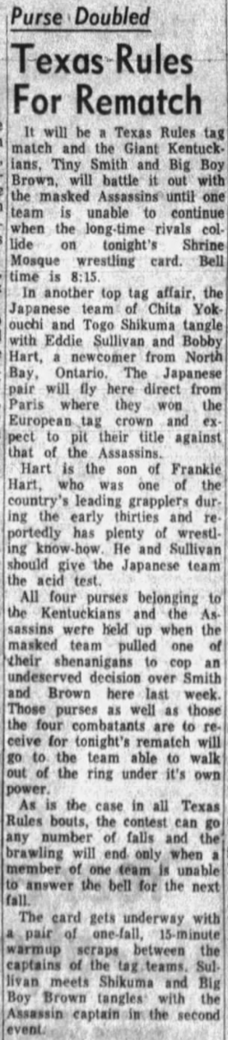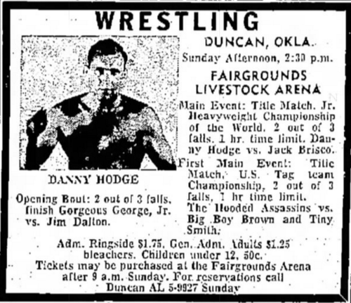 March 19, 1967 – Duncan, OK – Fairgrounds Livestock Arena – US Tag Team Title Match