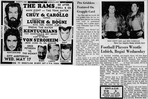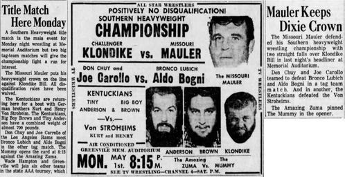 The Kentuckians: Tiny Anderson – Luke “Big Boy” Brown vs. Bronco Lubich – Aldo Bogni