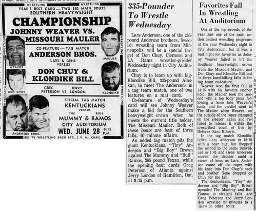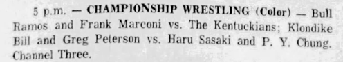 Klondike Bill – Greg Peterson def Missouri Mauler – Pampero Firpo