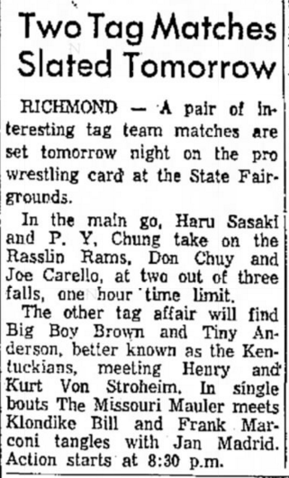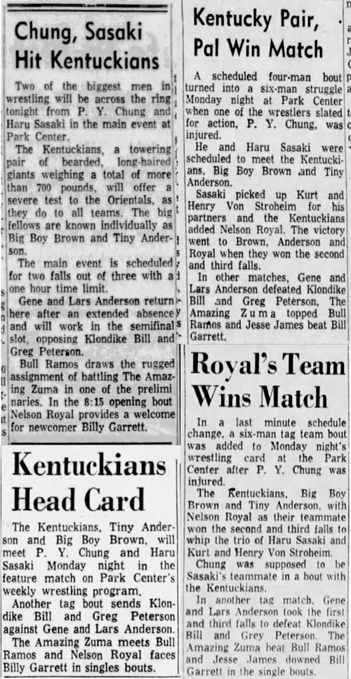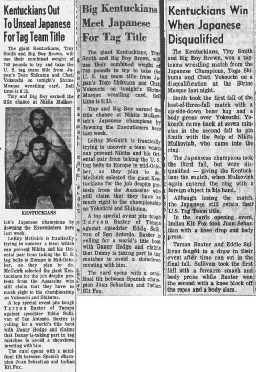 The Kentuckians: Tiny Anderson – Luke “Big Boy” Brown def Masao Kimura – Mr. Suzuki