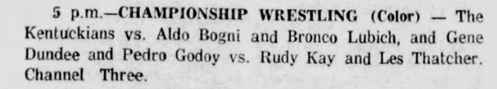Bill Watts – Rock Rogowski def Big K – Tuffy Truesdale