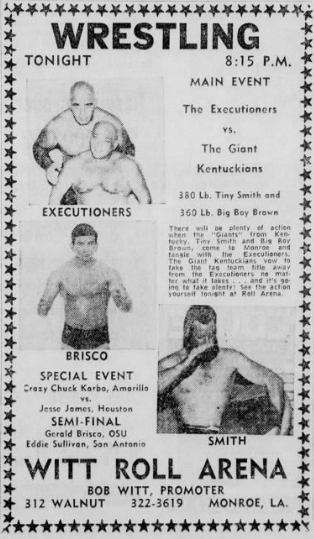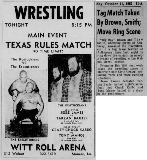 October 10, 1967 – Monroe, LA – Witt Roll Arena (Last wrestling matches at this facility after 25 years.)