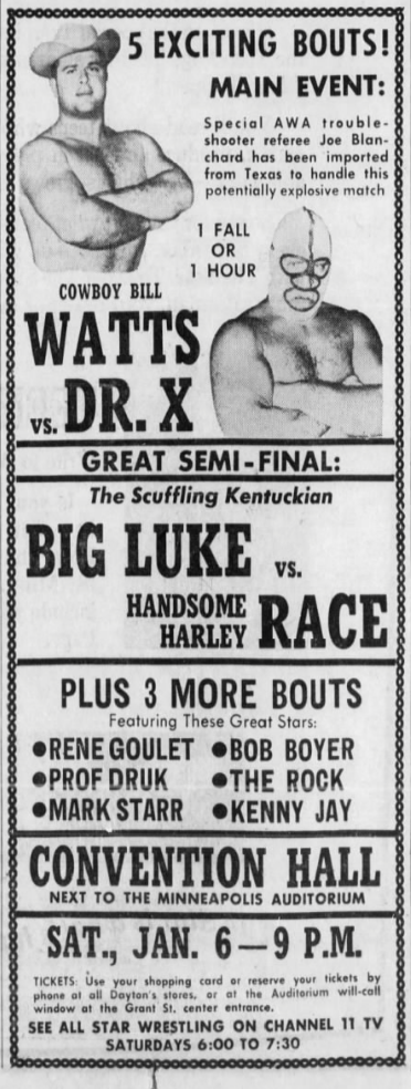 Bill Watts def Dr. X (DQ) – (Dr. X will unmask if pinned twice)