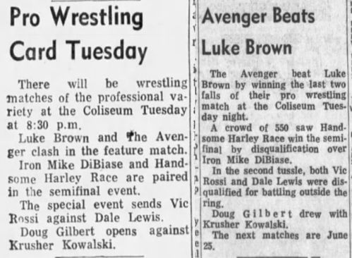 Luke “Big Boy” Brown – Bill Watts def Hard Boiled Haggerty – Harley Race