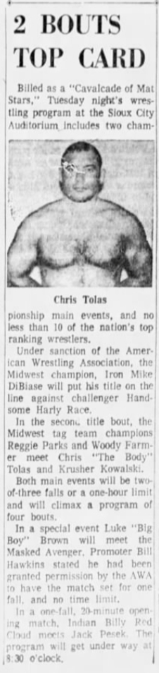 Iron Mike DiBiase def Chris Tolos with Joe Louis as referee