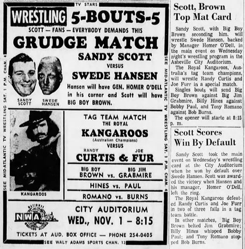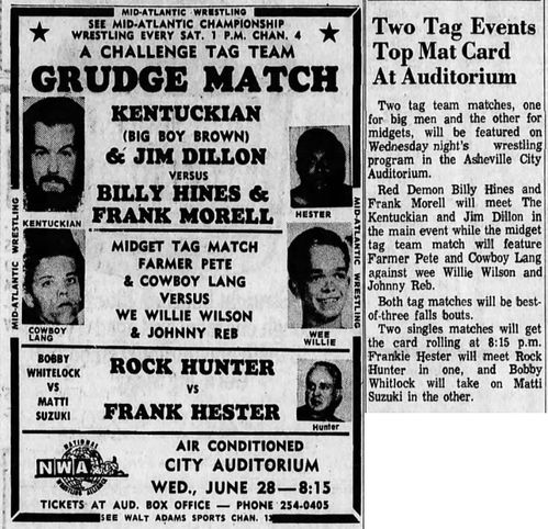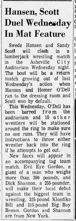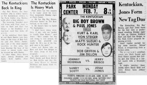 Big Boy Brown – Jim Dillon def. The Von Steigers – Karl von Steiger – Kurt von Steiger – DQ