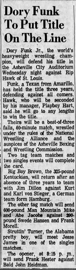 Eastern Heavyweight Title Match Jerry Brisco (c) def Rip Hawk