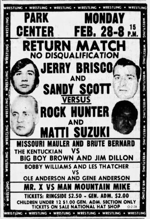 Jerry Brisco – Sandy Scott def Rock Hunter – Matti Suzuki