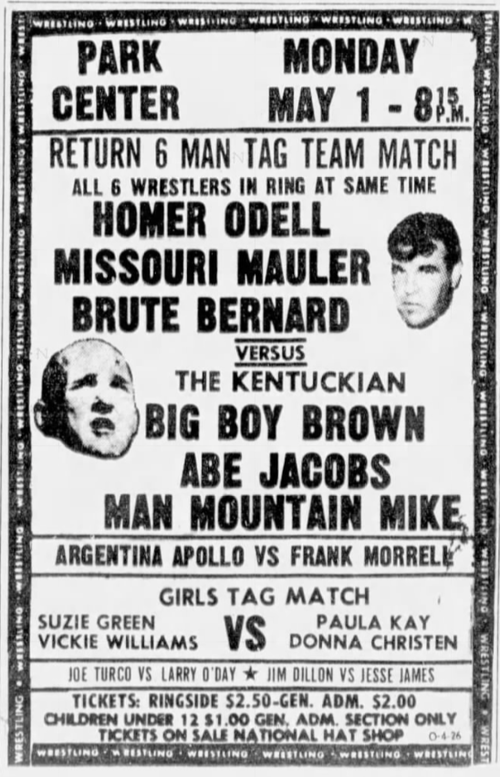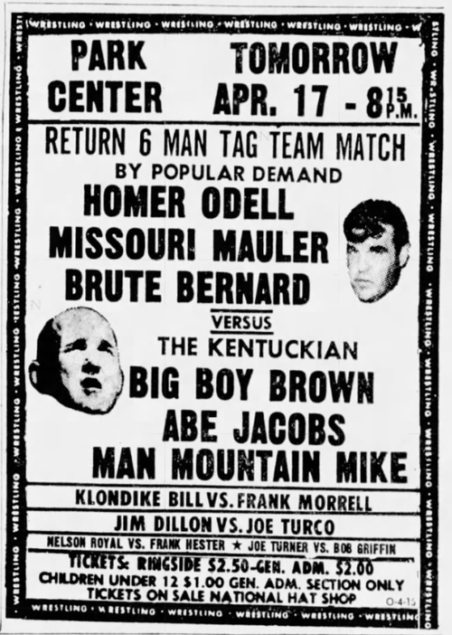 Big Boy Brown – Hercules – Paul Jones def. Brute Bernard – Homer O’Dell – The Missouri Mauler