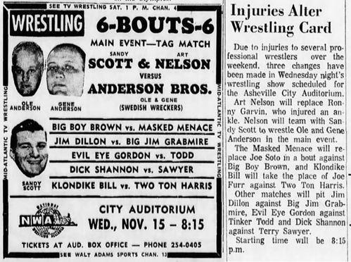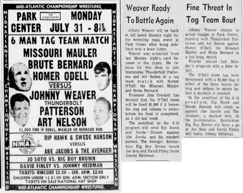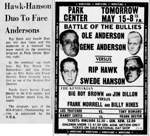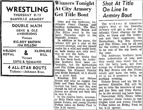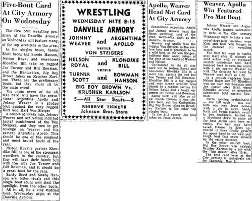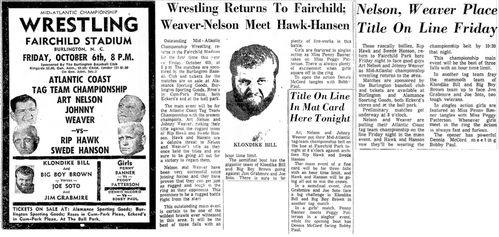 Johnny Weaver – Art Nelson def Rip Hawk – Swede Hanson
