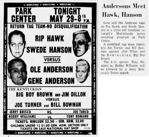 Paul Jones – Nelson Royal def Rip Hawk – Swede Hanson DQ
