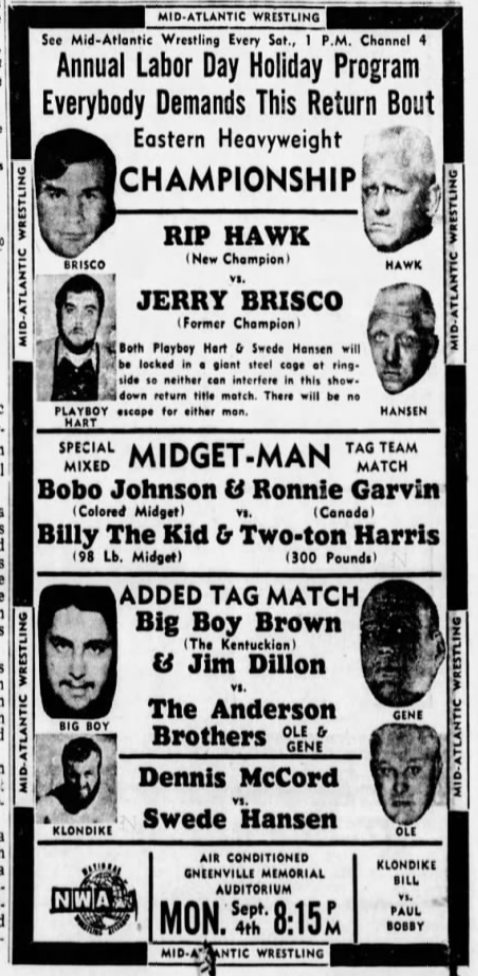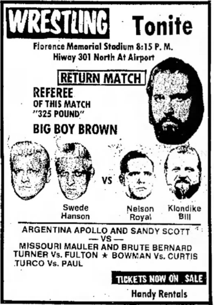Thunderbolt Patterson – Jerry Brisco vs. Rip Hawk – Swede Hanson