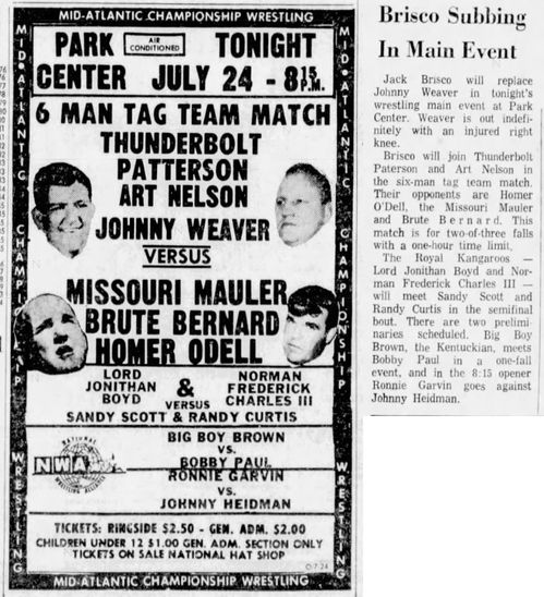 Johnny Weaver – Argentina Apollo def Rip Hawk – Swede Hanson