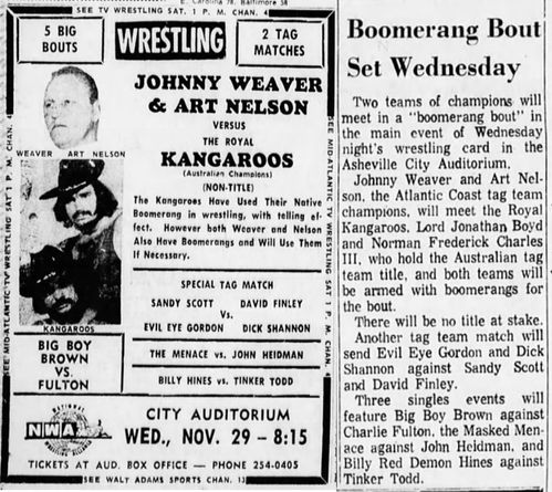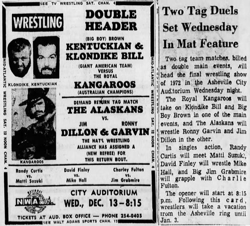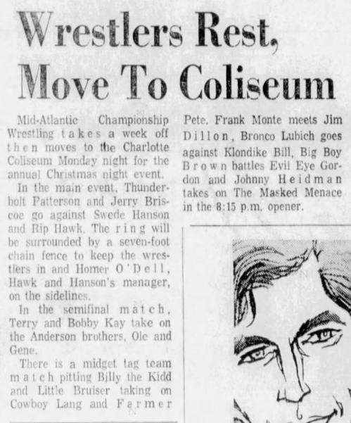 December 18, 1972 – Charlotte, NC – Advertisement for 25 December matches.
