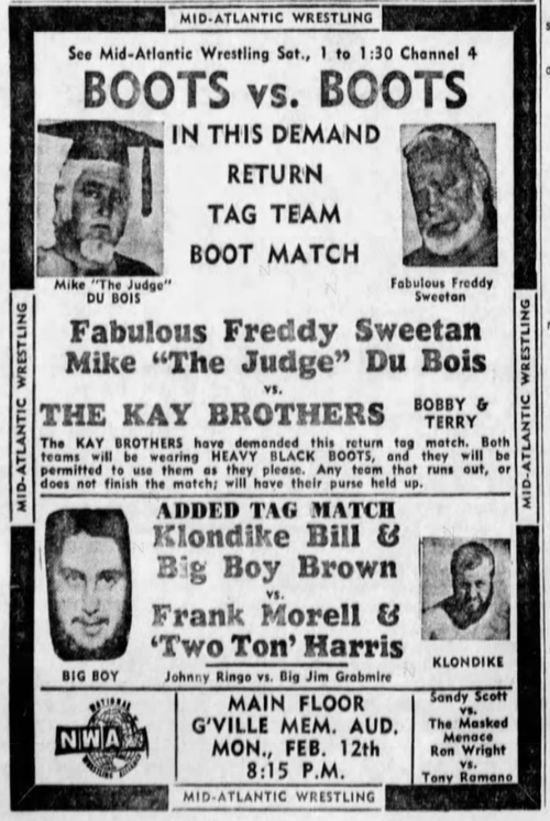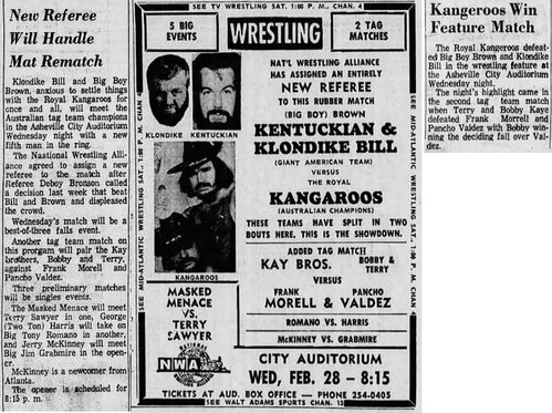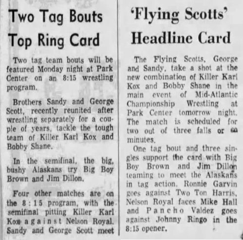 Nelson Royal – Sandy Scott def Ole – Gene Anderson to win Atlantic Coast tag title