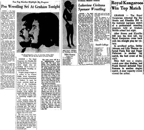 Klondike Bill – Big Boy Brown def. The Royal Kangaroos