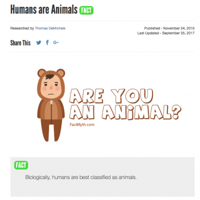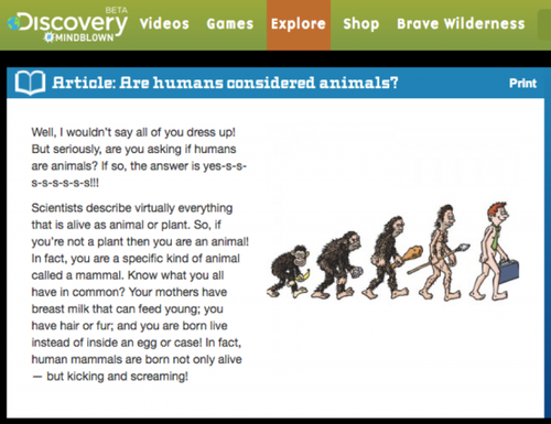 Tom Bartlett on “The Chronicle Of Higher Education” website in an article entitled, “Humans Are Animals: 8-Year-Old vs. Misinformed Teacher” wrote: