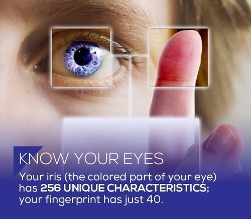 - The iris alone, the colored part of the eye, has 256 unique characteristics.