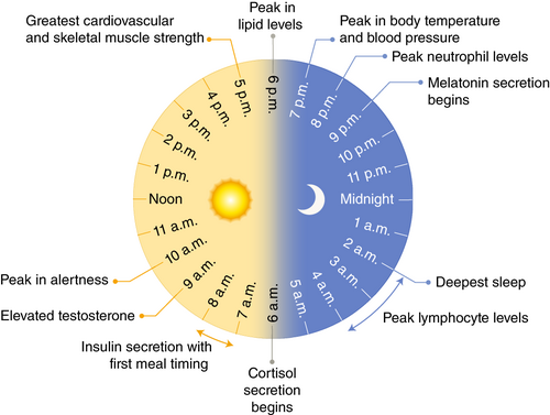 Playing a crucial role in metabolism, circadian rhythm also regulates the timing of insulin sensitivity, glucose metabolism, and energy expenditure, ensuring that the body processes food efficiently. Disrupting this rhythm can lead to metabolic imbalances, increasing the risk of obesity, type 2 diabetes, and other metabolic disorders. For instance, eating irregularly, particularly late at night, can misalign the circadian rhythm and lead to weight gain and insulin resistance. This is because the body’s ability to metabolize food fluctuates throughout the day, with insulin sensitivity being higher in the morning and decreasing as the day progresses. It’s easier to maintain a healthy weight and reduce the risk of metabolic diseases by aligning mealtimes with the body's natural metabolic rhythm.