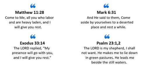 Jesus, with His unfailing love and amazing grace, wants to remind us in the midst of stressful and uncertain times that we can find “rest for our souls” (Matthew 11:29). Let’s make a commitment (not a “resolution”) to seek Him daily and practice the principles of REST.