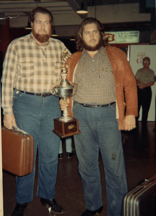 Then Kentuckians in Omaha, NE after winning some championship. Dad and Grizzly were briefly united while we lived in Omaha. If I remember correctly that trophy was destroyed by Dale Lewis as he beat someone with it. Vague memory so I won’t go on the record that is the total truth. It’s just what I remember. I was only 6 at the time!